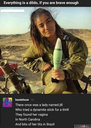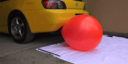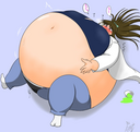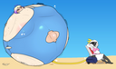 Yukari trips over while attempting to inflate her pooltoy with a foot-pump and gets stunned.