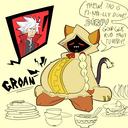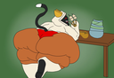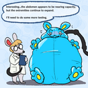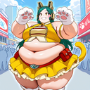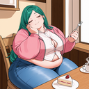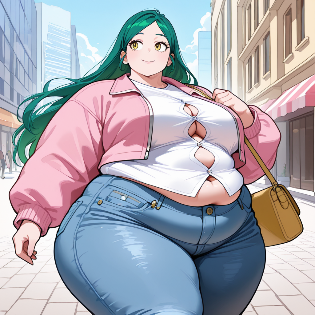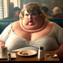 Basically, the mom tells the daughter to get more food from the kitchen, and we get a description of her waddling + her thoughts on how everyone in her town(?) has gotten massively obese. When she gets back to her mom, she notices a guy giving a speech on the tv. It’s then revealed that he’s a political figure of sorts, and he’s the reason why everyone in the town is so fat.