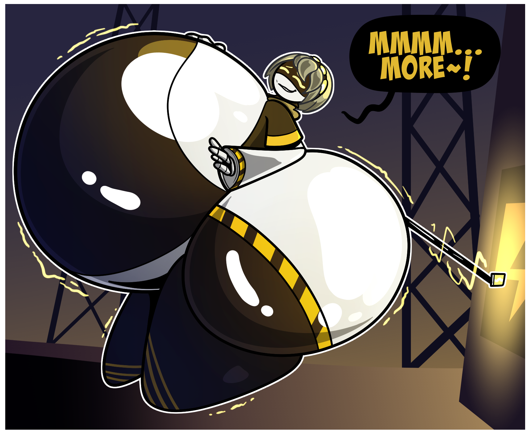 >Two endings. The default ending has the princess giving up adventure and confining herself to just eating, as was planned. If the princess got enough ingredients and defeated a secret boss only accessible at the highest weight stage, the princess is so voracious that the king fears she'll leave everyone else in the castle starving, so he allows her to leave the castle and adventure out in the world, considering the strength she displayed by beating the secret boss. The game ends with a scene of the princess saving a village by terrorizing a group of goblins and sitting in front of the goblin's cave entrance, completely blocking it off. The villagers cheer and the final shot is of the princess waving while eating a comically large cartoon ham
