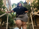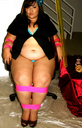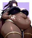 1girl, solo, (feet out of frame), tohsaka rin, booth seating, sitting, black thighhighs, black skirt, thick thighs, overweight, midriff peek, blush, looking at viewer, (simple background:0.8), masterpiece, best quality, amazing quality, (magentapeel, rkrk12:0.6)