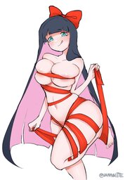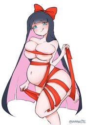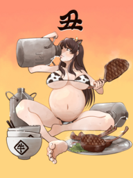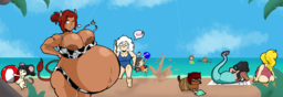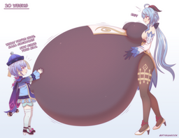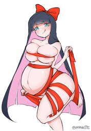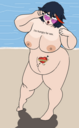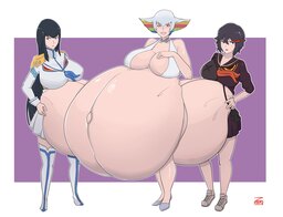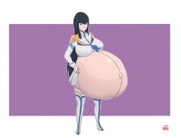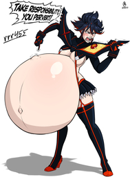 This is Ryuko Matoi as 220lb slutty pregnant women in a nude beach. Ryuko decides to embrace the naked life. Ryuko is now 28 year olds. She has been eating lots of desserts to make herself feel sexy. She had tattoos on her body. A heart that says Senketsu to commemorate her friend's sacrifice and a phrase. She felt lonely and the craziest thing happened. Is that she uses the life fibers to create a female child. Now Ryuko is both the mother and the father. That child name will be Yuzu. "I can't believe I am having a child and I'm both the parent. It's time to go get food to feed my baby and this glorious body."