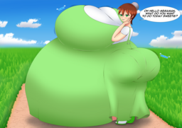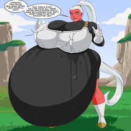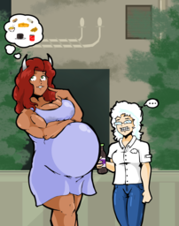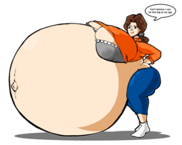 Medusa decides to strip down her clothes to show her motherly body. For months she has been eating triple portions every day nonstop. Medusa asks Loona to help feed Medusa rapidly. Medusa influenced Loona to eat more. Her bra popped out. That's the end.