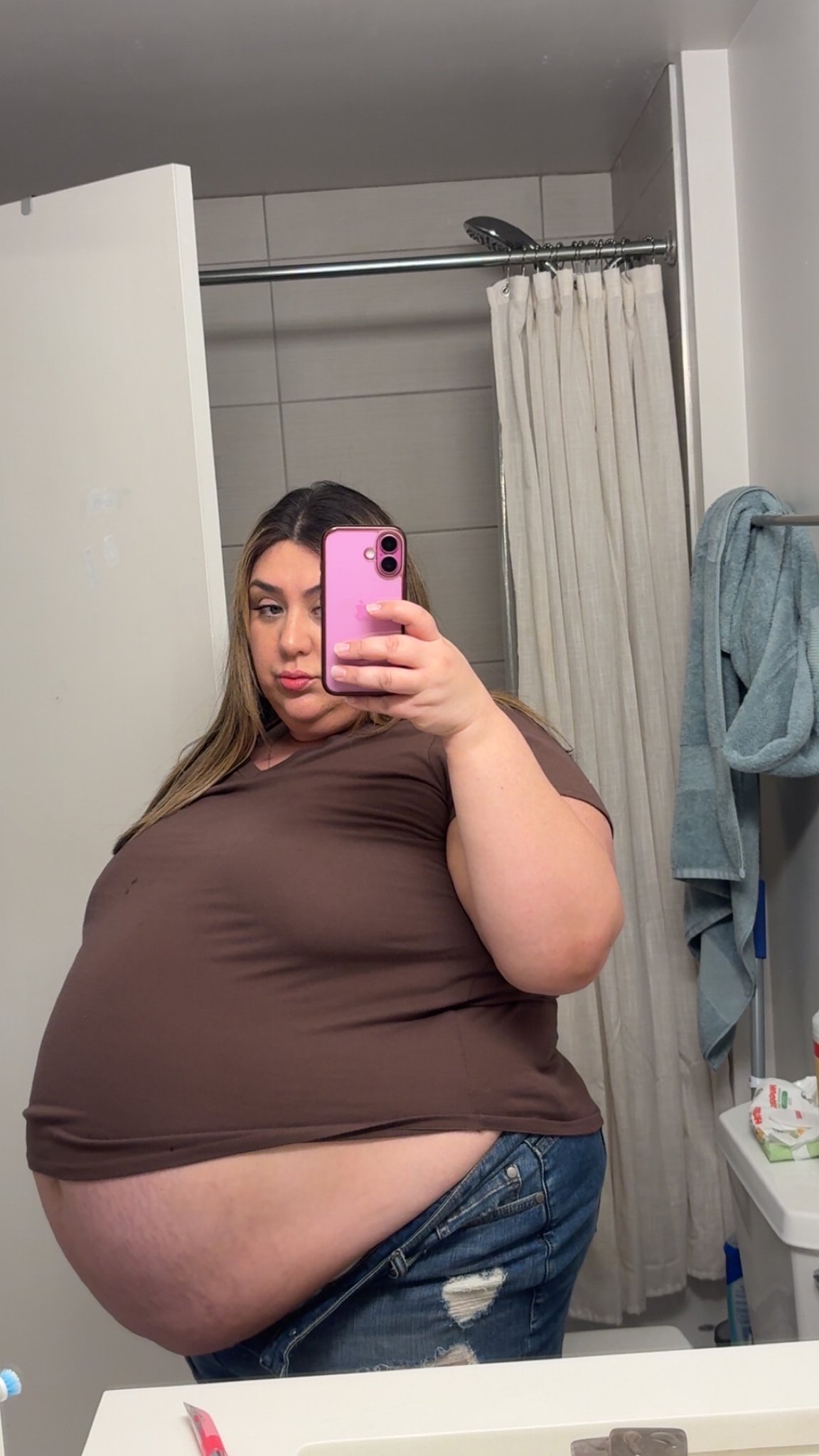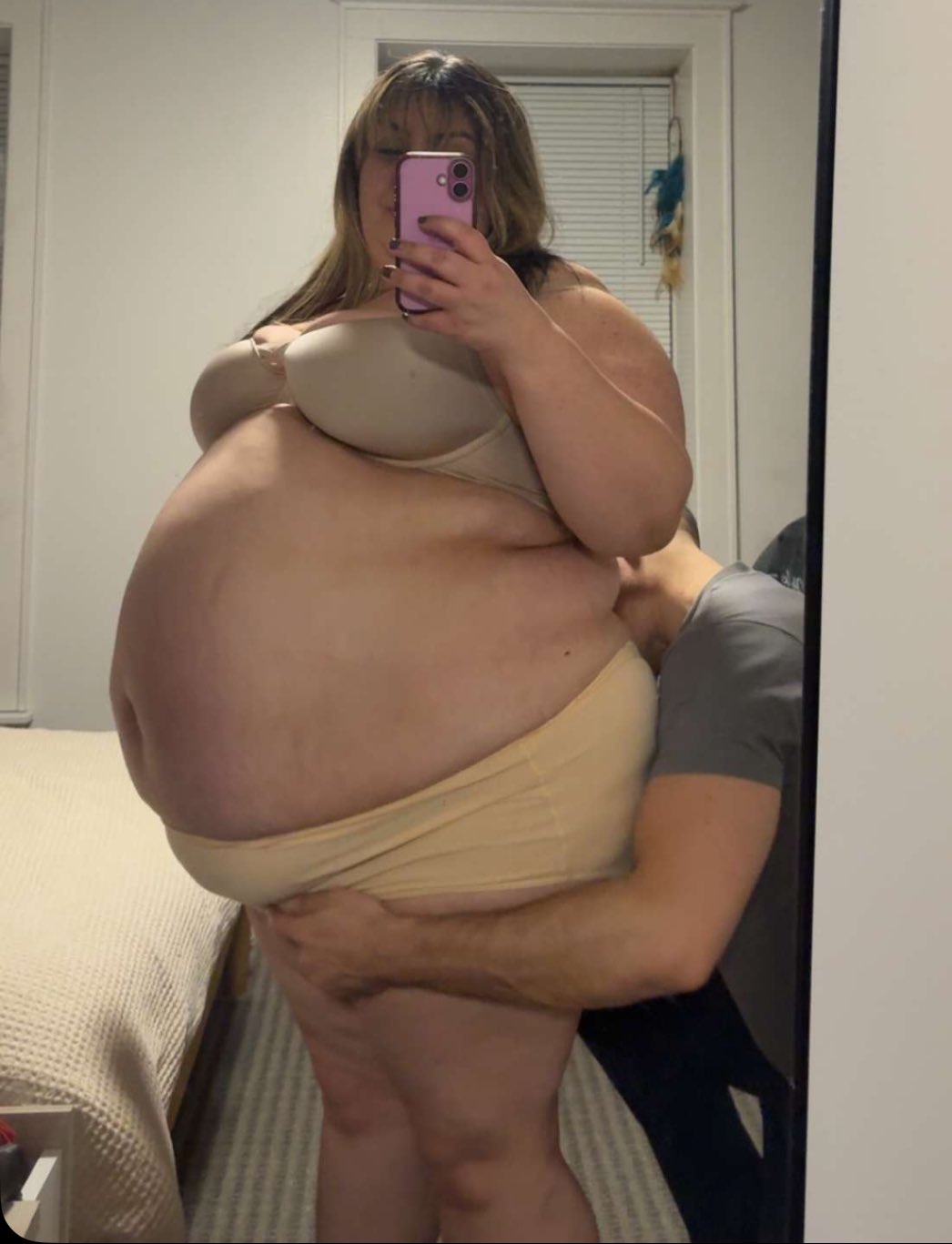 she posted a picture the other day of a guy behind her holding her belly so idk if he's a new feeder boyfriend on the scene? Would maybe explain how she's getting massive af recently...