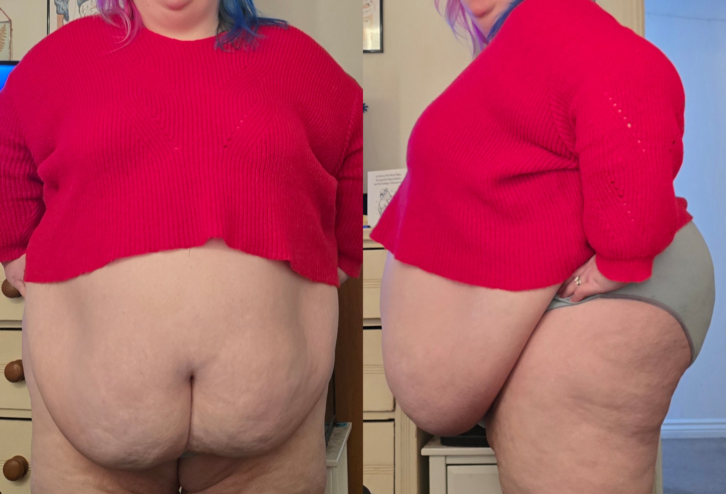 It's great to hear that she likes it overall, even if there are ups and downs. And I have to admit that her belly looks so good, especially with the stretch marks.