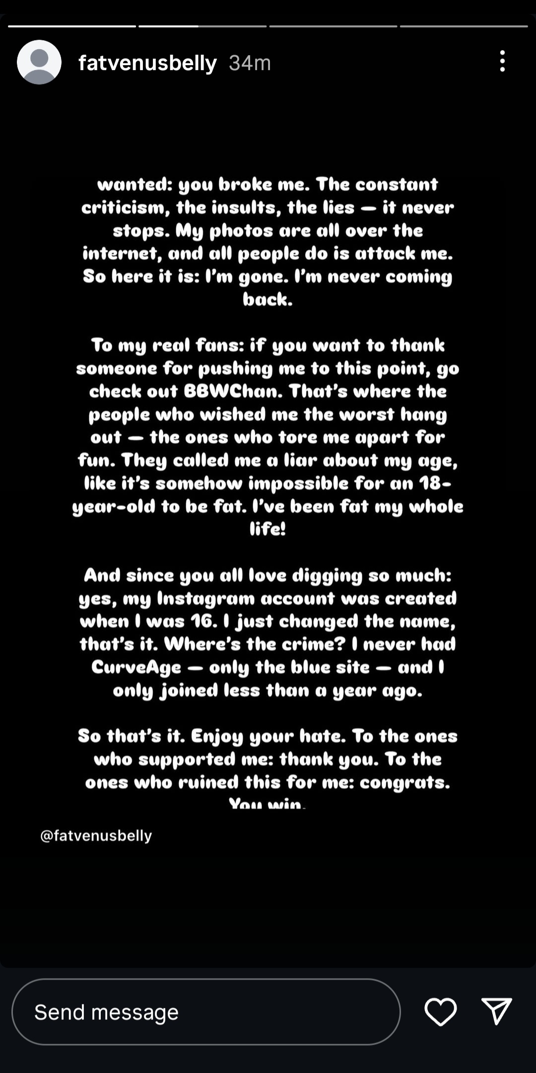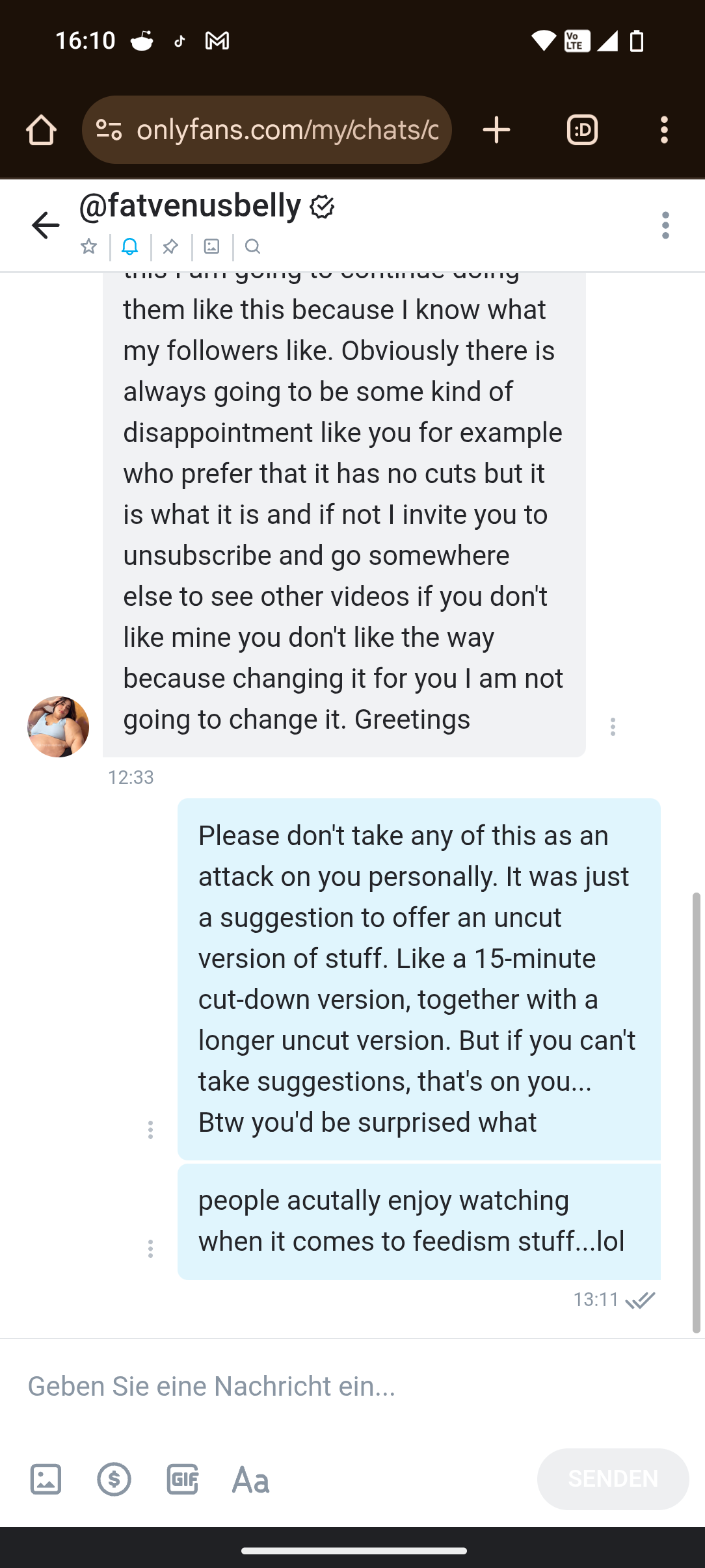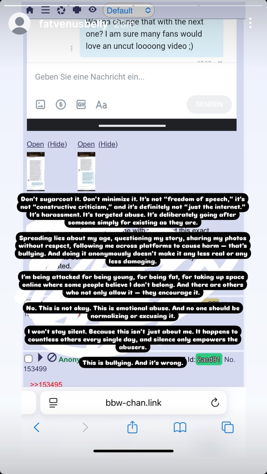 People just express their annoyance for many reasons, many things that you know very well that you have done, a clear example I saw how in the IG community you tried to defame 2 models, meibbw and bbw_feede Both Latin American models from Chile only because both had uploaded on their platforms and had for sale videos similar to yours and those of other much more models known all over the world, as I mentioned earlier.