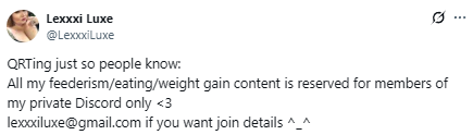 >>166333 No >>166335 It's not that she's trying to put it behind a paywall, it's that she's embarrassed about how monstrously obese she is 🥺