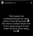 Oh you boys just don’t understand sarcasm🙈 you think I’m silly… I let one of you pay for photos and then that one person would post it on here instead of me getting anything out of it🤷🏼‍♀️ plus the people in my message request offering £5-£10 is just laughable tbh☺️ I’ve got 46 days left and counting☺️ but to the person saying I should have a chat with someone because she does content and had a reduction but regrets it and she may regret it because she creates content. I take photos and make tiktoks but I have a job and I love my job because I help people who need it. I may think about actually letting yous all have photos of my boobs before my reduction but I need better offers than that☺️ as always reading this forum has made me giggle a little❤️